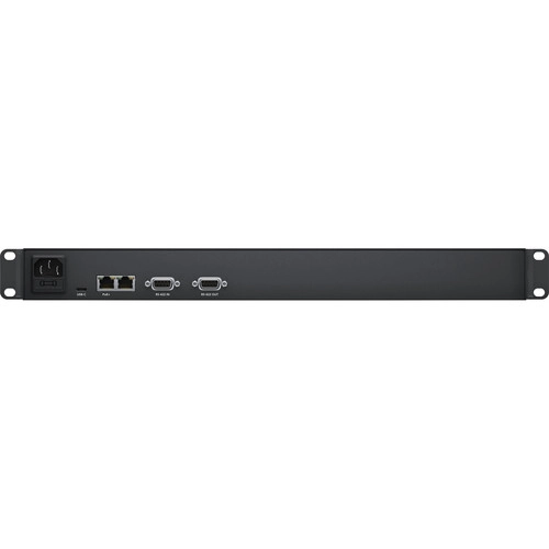 The rear of the unit features an RJ45 Ethernet input with PoE to connect your sources and power the unit, or it can be powered with a separately available C13 power cable. There is also an Ethernet loop output without PoE to communicate with your destinations. Two RS-422 input and output ports for future implementation are also on the back as well as a USB Type-C port for software configuration and firmware upgrades.