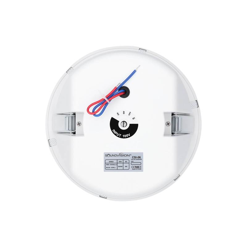 ลำโพงติดเพดาน ขนาด 6 นิ้ว กำลังขับ 6 วัตต์ รองรับงานระบบเสียงติดตั้งในร่มที่ต้องการเสียงคุณภาพสูง ออกแบบเพื่อตอบโจทย์การใช้งานที่หลากหลาย ไม่ว่าจะเป็นระบบเสียง Background Music และระบบเสียงประกาศ Public Address System แรงดันไฟฟ้า 100V รองรับ 100V: 6W/3W, 6W@8Ω. CSI-06 ออกแบบให้เหมาะสำหรับการใช้งานในสถานที่ต่างๆ เช่น โรงแรม, ห้างสรรพสินค้า, ร้านอาหาร, บาร์, ห้องรับรอง, ห้องเรียน, และห้องประชุม ฯลฯ เป็นต้น