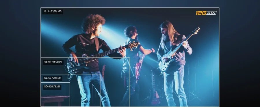 | SDI Auto Switching | Automatically selects between SD, HD, 3G‑SDI level A and B, 6G‑SDI and 12G‑SDI |