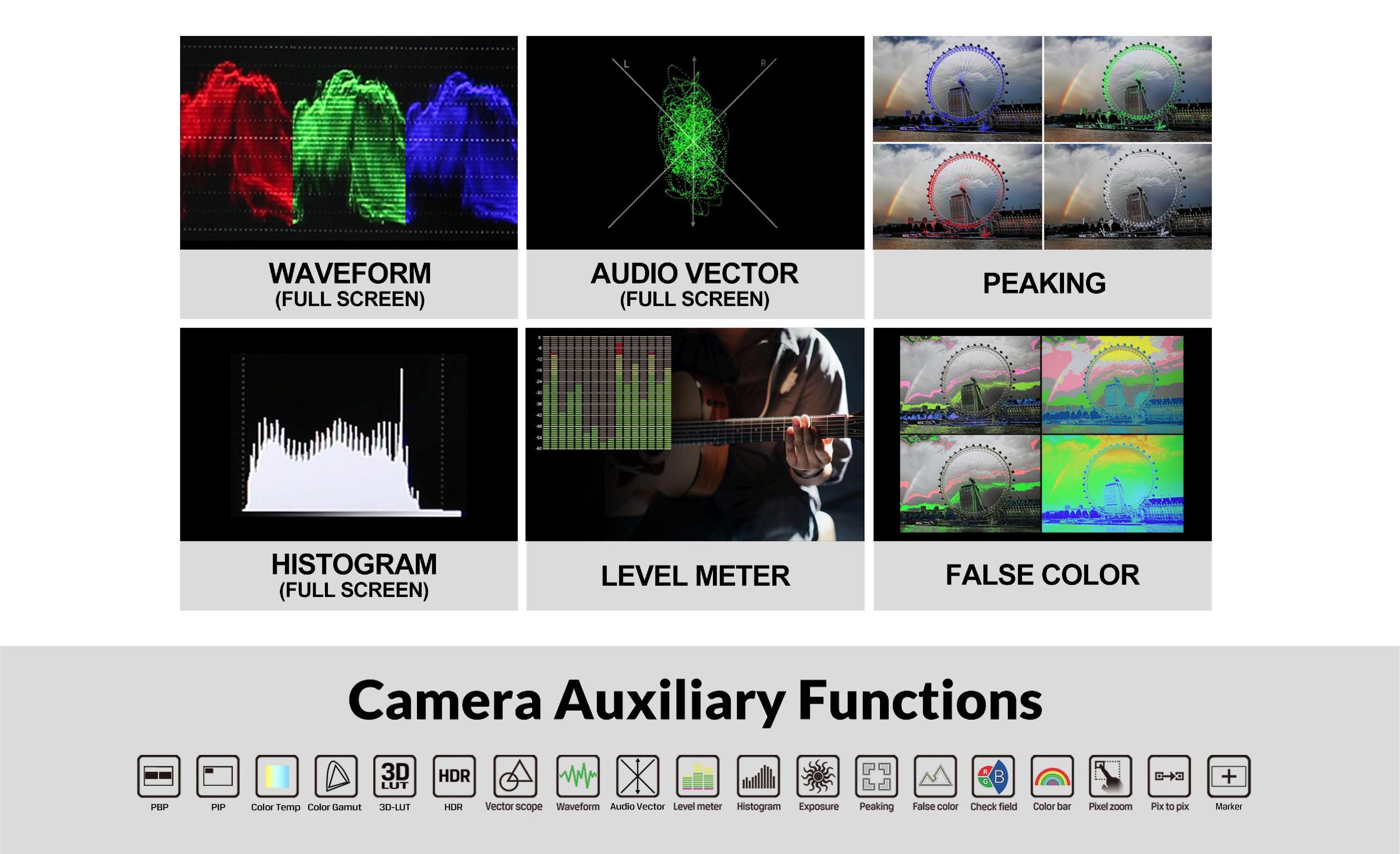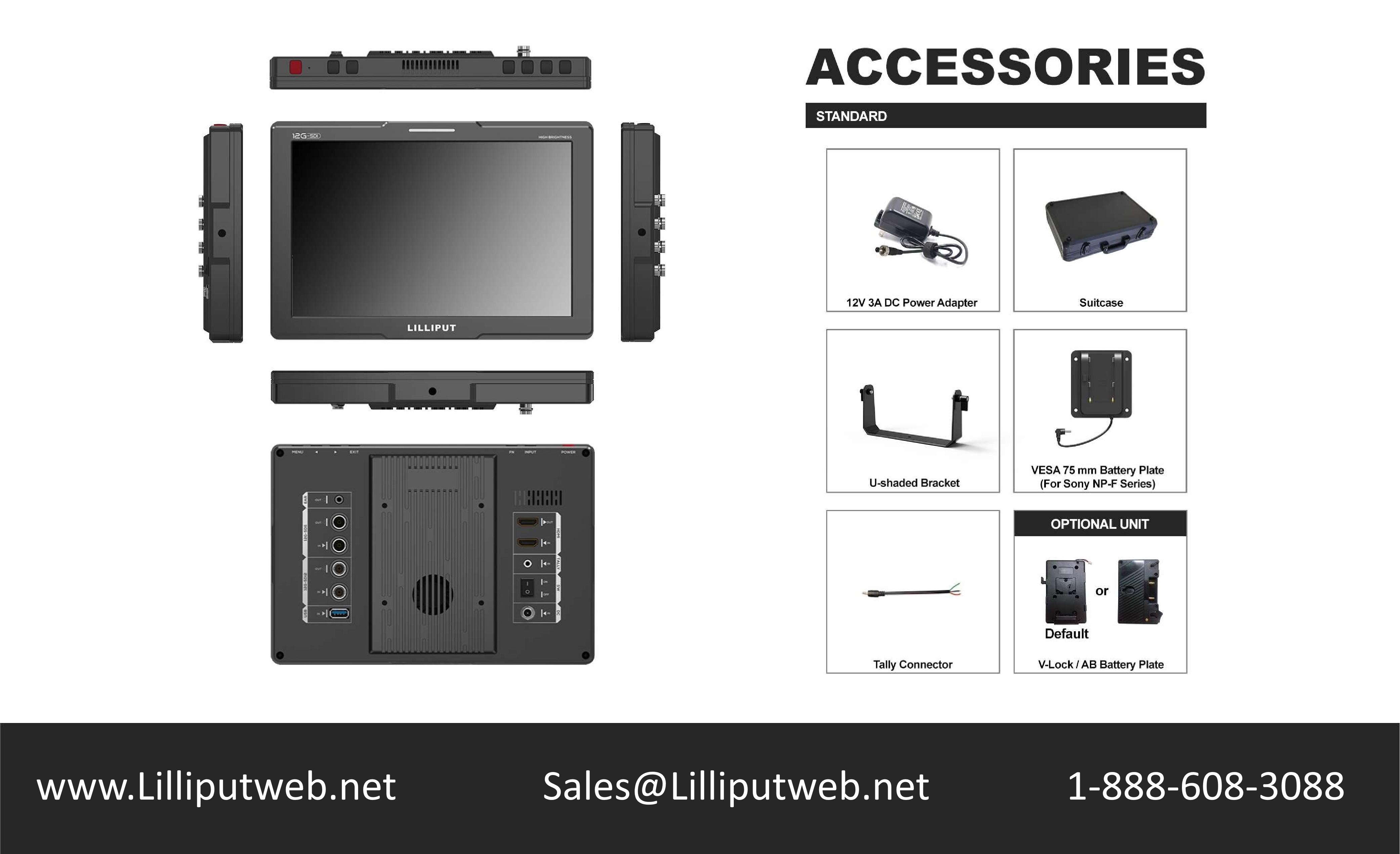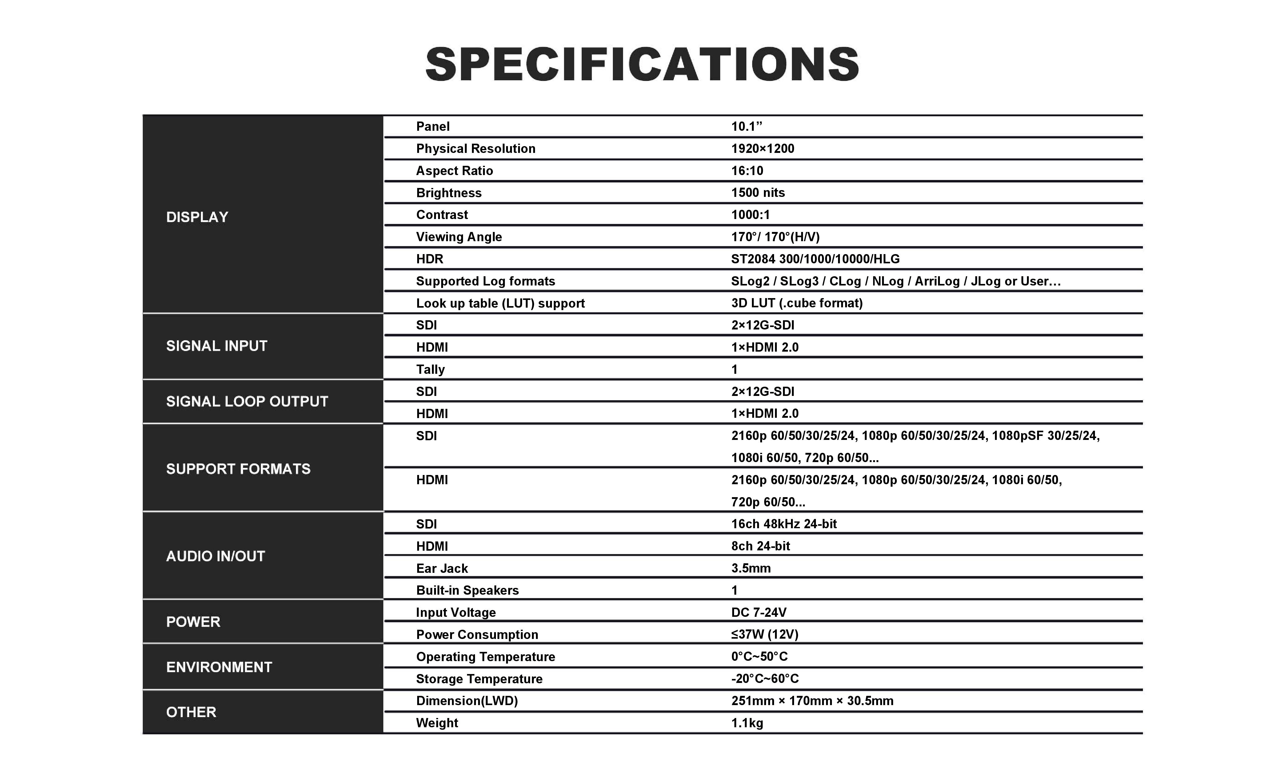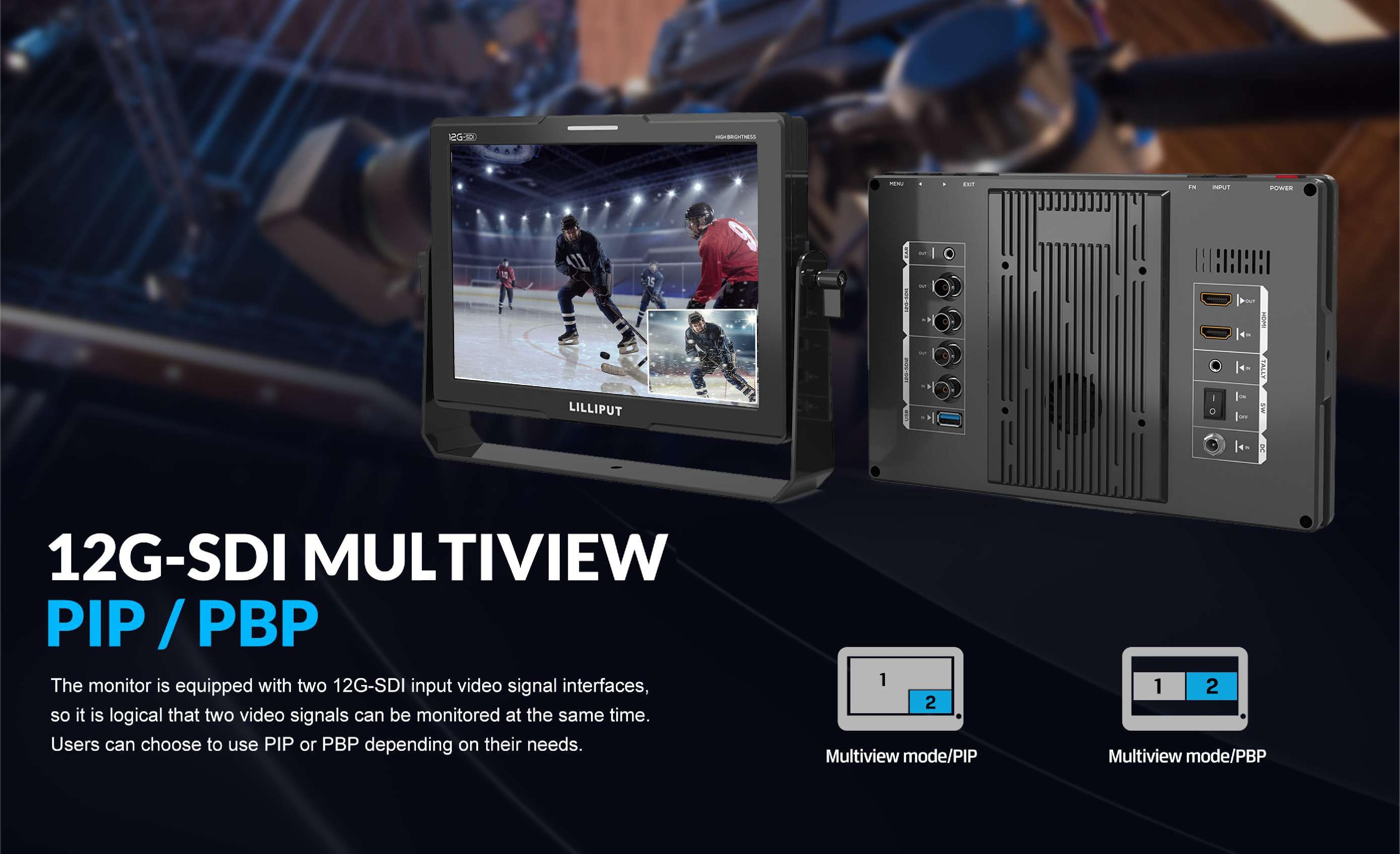 Q10 is a professional camera-top monitor came with an amazing 1500 nits Ultra Bright LCD screen, specifically for photography and film maker, especially for outdoor video and film shooting.This 10.1 inch LCD monitor has 1920×1200 Full HD native resolution and 1200:1 high contast providing superior picture quality, and support 4K HDMI 2.0 and 12G-SDI signal inputs and loop outputs. It is possible to receive 2× 12G-SDI signals and diaplay at the same time through the picture-in-picture function, the size and position of which can be adjusted.And HDMI signals up to 4K 60Hz which is compatible with the latest DSLR cameras on the market with an HDMI 2.0 interface.