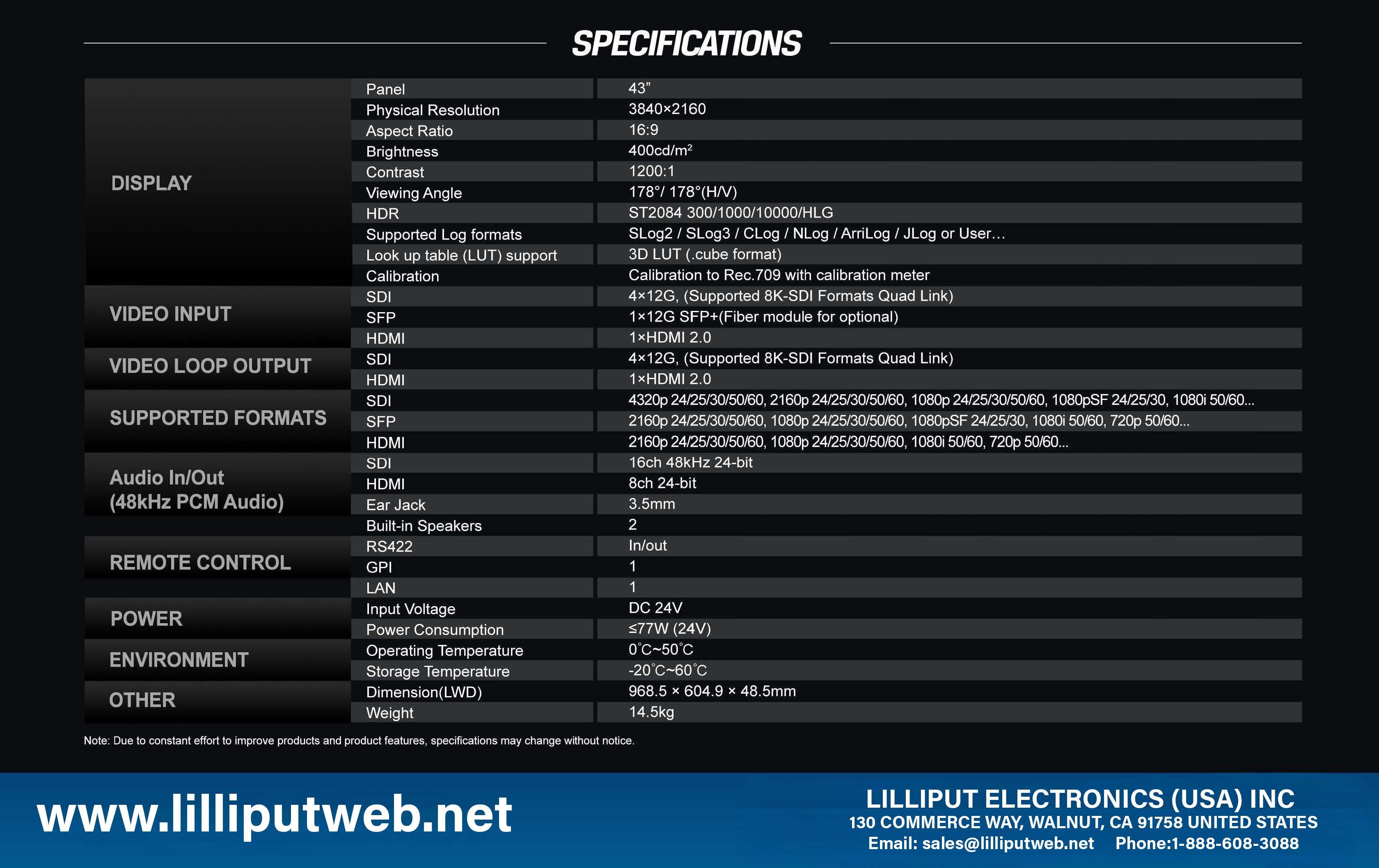 | VIDEO LOOP OUTPUT | SDI | 4×12G (Supported 8K-SDI Formats Quad Link) |